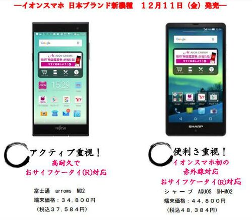 ■今更感もあるラインアップになりました^^; https://www.aeonretail.jp/pdf/151210R_2.pdf しばらく新機種が無かったイオンさんに、ついに新機種の登場です。 第8弾として富士通さんの『arrows M02』 第9弾としてシャープさんの『AQUOS SH-M02』の誕生…